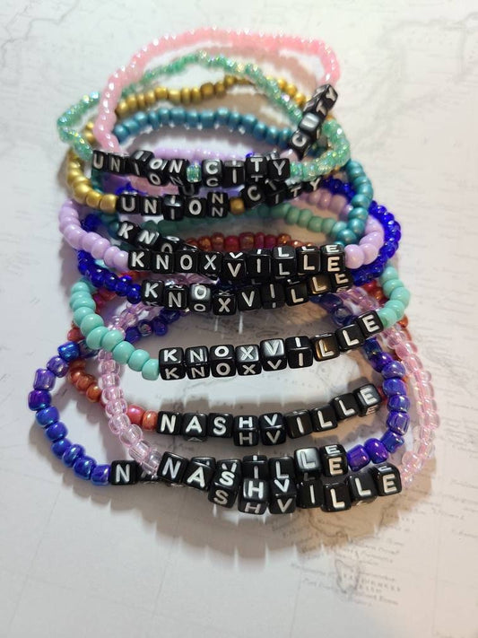 Custom City Bracelets, State Bracelets, Vacation Places, Home Town Bracelets, Personalized Bracelets